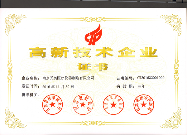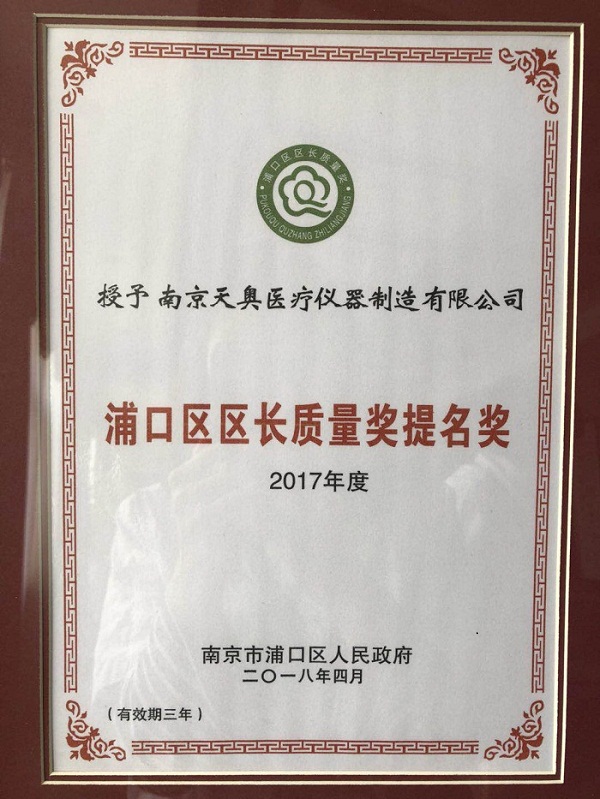 南京天奧醫(yī)療儀器制造有限公司,先后通過了ISO13485,ISO14001,GB/T28001,ISO9001等資質(zhì)認證。2015年主營產(chǎn)品被評為南京市名牌產(chǎn)品。2016年通過江蘇省著名商標(biāo)、南京市著名商標(biāo)復(fù)審。2016年被認定為國家級守合同重信用企業(yè)。2018年4月榮獲浦口區(qū)“區(qū)長質(zhì)量獎”提名獎和“質(zhì)量先進單位”的榮譽稱號。