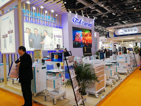 天奧本次的展位布置在六館主廳6M07展位,醒目的LOGO和排列有致的展出的產(chǎn)品無不令觀者眼前一亮。天奧本屆展會在保留了往次展會中廣受好評的經(jīng)典產(chǎn)品同時,展出了太空系列護理推車產(chǎn)品,向用戶及各界參會者生動詮釋了天奧在醫(yī)療護理應(yīng)用領(lǐng)域全面而完善的醫(yī)療信息化解決方案。